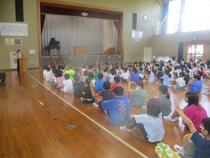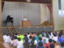 夏休み明け集会では、校長先生と養護教諭からお話がありました。