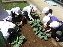 子どもたちが大事に育てている植物がすくすくと成長しています。理科の授業で、葉の形や色に気を付けながら、一生懸命に観察カードを書いていました。収穫の日が待ち遠しいですね。