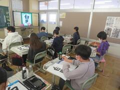 5年生は書写の時間に「白馬」の練習をしています。漢字同士の大きさに気をつけながら、お手本をよく見て練習していました。