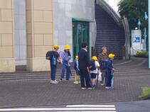 学区内の小柴交差点では、「イセデリカ株式会社」の方々が、登校時の見守りをしてくださっています。