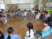 6年生が「なんでもバスケット」をして一年生と一緒にたのしく遊んでいました。