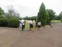1年生は生活科の通学路の学習で、学校の裏の公園に探検に行きました。