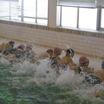 児童は洋服を着たまま入水したとき、動きにくさを感じていました。