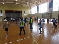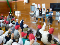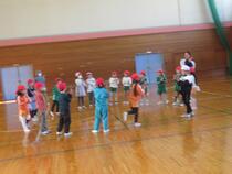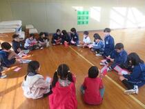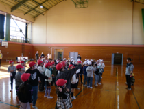 長山小学校の体育館でレクレーションやプレゼント交換をしたり、校舎内を案内してもらったりしました。