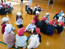 みんなで「あわてんぼうのサンタクロース」を歌った後、縦割り班に分かれて、6年生が考えた遊びを楽しみました。