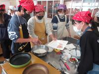 6年生は、家庭科室でパンケーキを作りました。