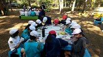 今日の午前中は、野外でカレー作りをしました。協力して作ったカレーを児童が「美味しい!」と言って食べている様子が印象的でした。