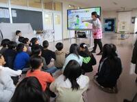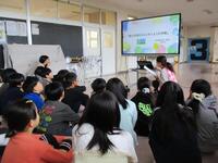 朝の時間に高学年に向けて養護教諭による目に関する保健指導が行われました。