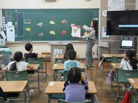 低学年は、図工で芸術祭の作品を大きなマーメード紙に描いていました。完成が楽しみですね。
