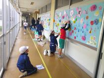 5年生は来週の「1年生を迎える会」に向けて、プレゼントの王冠づくりをしました。