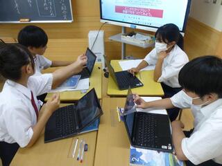 生徒たちは、グループの友達と話し合い、協力して課題に取り組んでいました。