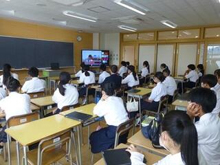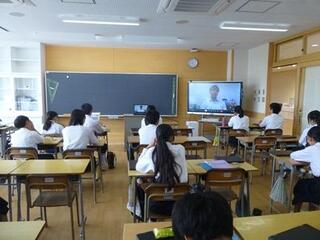 後期始業式が図書室からのオンラインで行われ、学年の代表が、学習面や生活面の目標を発表しました。