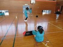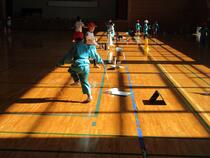 4年生の体育では、プレルボールというボール運動を学習しています。今日は、3~4人のグループで、何回続けられるかという練習をしていました。「手を高くあげた方がバウンドするよ。」「(二人の)真ん中にあてるようにすると取りやすいかも。」など、友達と話し合いながら練習したので、どのグループも続けることができるようになっていました。