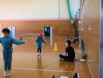 流通経済大学の学生さんがなわとびサポーターとして授業の支援にいてくれています。子供たちは「つっかえずに跳ぶにはどうすればいいですか。」「どうしたら長く跳べますか。」大学生のサポーターさんは、子供たちの質問に、優しく答えてくれていました。自信がついた子供たちは、上手に跳べるようになりました。