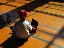 3年生の体育では、マット運動を学習しています。子供たちは、タブレットで自分のフォームを撮影し、その動画を確認しながら練習していました。「ほら、今度はきれいに回れたよ。」「○○ちゃんの上手だね。」「次は○○ちゃんの撮るね。」
