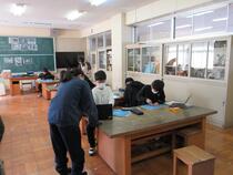長山中学校で新入生保護者説明会と中学校体験入学がありました。6年生の子供たちは、中学校の教室で、社会と英語を体験しました。松葉小学校の子供たちとの交流もできました。4月の入学式がさらに楽しみになったことと思います。