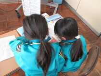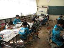 2年生の算数では、繰り上がりのあるたし算とひき算の学習をしています。子供たちは、単元のまとめのプリントに取り組んでいました。友達が困っている時、「こうやるんだよ。」「あ、そうか、分かった。」など、自然に学び合う子供たちの姿が見られます。長山小学校では、「支え合い学び合う学習集団づくりを目指しています。