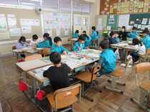 3年生の図工では、「わりピンアート」という題材に取り組んでいました。子供たちは、友達と相談しながら、「この絵にするといいよ。」「こっちの色の方がいいね。」など、よりよい作品となるように、話し合いながら活動していました。完成が楽しみです。