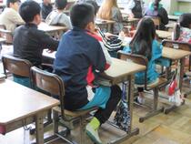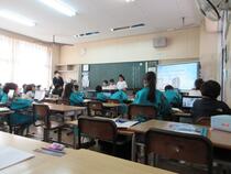 5年生の学級活動では、「いじめ防止スローガンを決めよう」という議題で話合い活動をしていました。子供たちは、「みんな元気だけじゃあだめだよ。」「元気よりもなかよくの方がいいと思います。」など、活発な意見交換をすることができました。