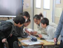 1年生の算数では、「100までのかず」を学習しています。ペアでおはじきのゲームを通して、「10がいくつと1がいくつで」を考えていました。「10点が2と1点が3で、23だね。」「10点が1と1点が1だから、11になったよ。」