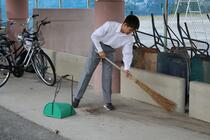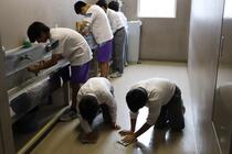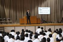 後期に入り、1回目の清掃活動が行われました。校長の黙働清掃に関する講話を受け、生徒たちそれぞれが清掃の仕方を見直し、自分たちで安心安全な学校を作っていこうとする態度で取り組んでいました。