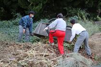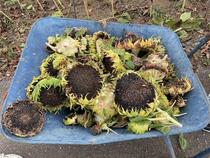 生徒会が植え育て、地域の皆さんに楽しんでいただいた「ど根性ひまわり」。中心部が枯れ黒くなってきたので刈り取りました。今後、種を取り出して保存し、来年に植える予定です。