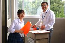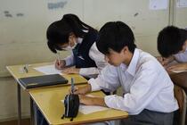 本日、生徒の視力検査を行い、教育実習生が運営を行いました。緊張しながらも、生徒が安心して検査に臨めるように、優しい声かけをしていました。