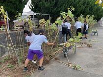 3学年の生徒2名が作業中の職員に声をかけ、校外の清掃活動に取り組みました。生徒たちの「自ら考えて行動できたこと」・「誰かのために率先して行動したこと」は本校の教育目標「自立・共生・貢献」のグットモデルとなりました。