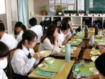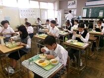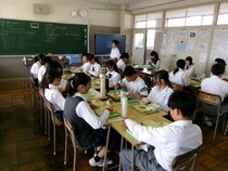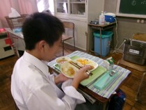 夏龍祭が終わり普段通りの生活になりました。生徒たちは、行事終了直後でも穏やかに生活していました。給食の時間の教室をのぞいてみると、楽しく談笑しながら食べていました。今日のメインのおかずはおろしハンバーグ。モリモリ食べる生徒もいました。