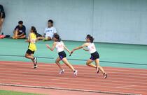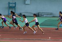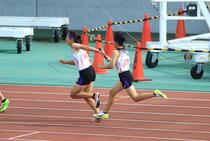 県新人陸上競技大会2日目。女子110mハードル、男子1500m、女子400mリレーのそれぞれの決勝と、女子100mトライアルに出場しました。皆、各地区の強豪選手とタイムを競いました。そのうち、女子400mリレーは、0.03秒差で4位。入賞まであとわずかでしたが、自己記録は更新する大健闘でした。