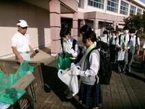 中根台中学校区小中一貫事業として、クリーン作戦を行いました。登校しながら地域のゴミを拾ってきました。終了後、生徒会長が、全校生徒に向けて、地域貢献活動のお礼を放送で言いました。