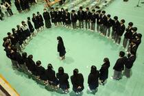 2年生の合唱を聴く3年生