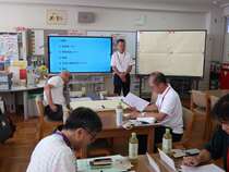 午後は、学校に戻り生徒に実施した「Q-Uアンケート」の分析を行いました。現在の集団の特徴や個人の心理を見取り、9月から学年学級経営を検討しました。