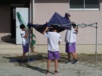 5校時、明日の夏龍祭に向けての準備をしました。係所属生徒は係活動、係に所属していない生徒は、テント設置やグランド整備、除草など、全校で活動しました。