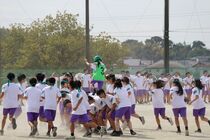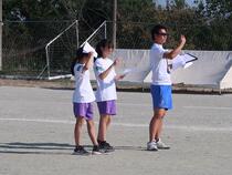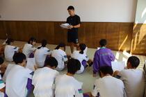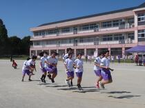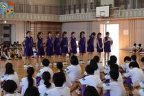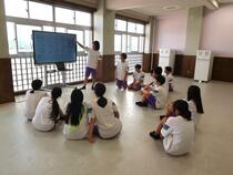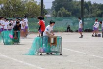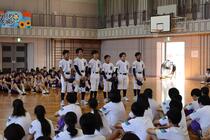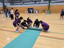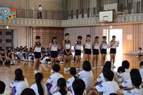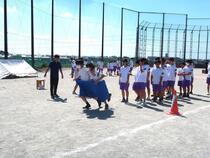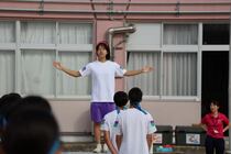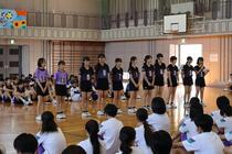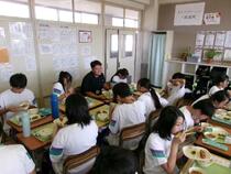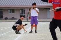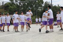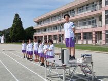 本日より4日間、本市と流通経済大学との龍流連携として、2名の学生が教育現場実習として来校し、体育祭関係の準備や練習の補助に取り組んでくれています。初日は1年生の教室で楽しく給食を食べました。