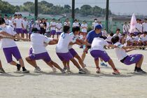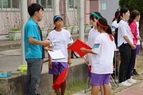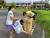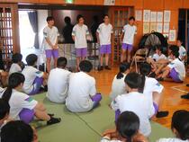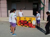 夏龍祭練習2日目。競技の練習が始まりました。早速、各団の3年生たちが、勝利に向け作戦会議をしていました。