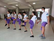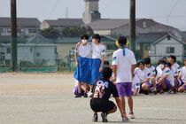 放課後、団役員の生徒が応援合戦の練習をしていました。団によっては、限りある練習日から構成を見直す団もありました。