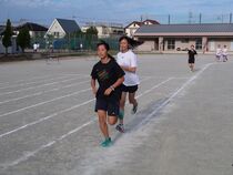陸上部員と有志希望者で県南駅伝に出場することになりました。今日は、選手選考の参考にするために3000mのタイムを計りました。