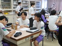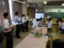 6校時、県教育研修センターの指導主事を講師でお招きして、全員研修会を開催しました。2年2組の理科を参観し、「主体的な問題解決・探究の活動」をテーマに協議しました。生徒たちは、「唾液のはたらき」の学習を通して消化について熱心に取り組んでいました。この研修には、学区の小学校の若手の先生方にもご参加いただきました。