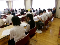 9月20日(土曜日)、本校生徒がひなっこフェスティバルにボランティアとして参加するため、生徒会長はじめ4名の生徒会本部役員がひなっこフェスティバル実行委員会の会議に参加しました。地域の方々の中に入り会議に参加し、当日の活動についての説明を受けてきました。