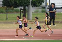 県南中学校新人陸上競技大会2日目。生徒は100m予選と決勝、男子1500m決勝、女子400mリレー決勝に参加しました。全員、自己記録の更新をめざして挑みました。そのうち、2年100mで2人が決勝に進み、そのうち1名が第2位、2年1500m決勝では第4位、女子400mリレーでは、見事第1位を取りました。