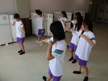 昼休み、夏龍祭の応援合戦の練習をしていました。団役員が完全マスターしてから下級生たちに教えるそうです。仕上がりが楽しみです。