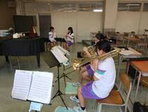 吹奏楽部は、小学校での出前演奏を前に、練習に励んでいました。
