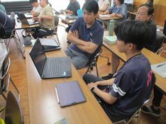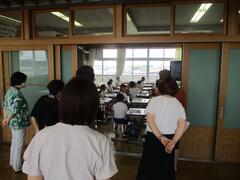 馴柴まちづくり協議会役員のみなさんと文教体育委員会委員のみなさんが来校し、夏休み標語の審査会を行いました。