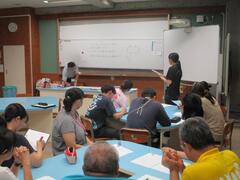 【教育相談】をテーマに、架空の事例をもとに、グループごとに、どこで話を聞き、何を尋ねるか、何を心がけて気をつけて話を聞くかなどについて検討しました。