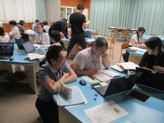批判的な視点で指導案を見直す力を付けるため、指導案の例を使い、おかしなところを見つけ出し、グループで意見交換を行いました。また、アドバイスをいただきながら、単元の構成図を実際に作成しました。今回の研修で学んだことを活かし、子供たちの学力向上のために、学校全体で取り組んでいきたいと思います。