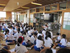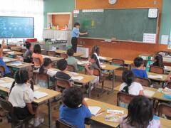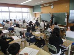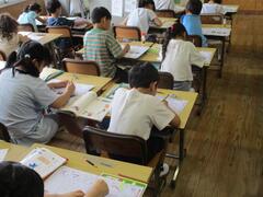 はじめに、各学年の授業の様子を参観していただきました。登下校や休みの日の姿とは違い、学習に真剣に取り組む子供たちの姿に大変感心されていらっしゃいました。