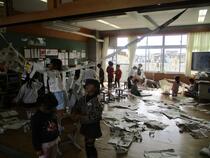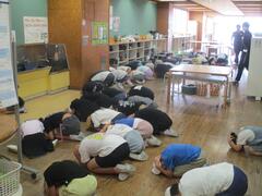 台風接近のため延期されていた、竜巻対応の避難訓練を行いました。子供たちは避難の合図を聞くとすぐ、窓から離れ、頑丈な壁に囲まれた場所で、背中を丸め頭を守る「亀のポーズ」をとりました。最近でも静岡で大きな竜巻被害が発生するなど、いつどこで竜巻が発生してもおかしくなくなりました。学校の中だけでなく、家にいるとき、外で歩いているとき、お店にいるときなど、どこにいても竜巻に遭遇したときの避難の仕方を身に付けてほしいと思います。