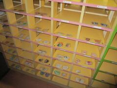 1年生は、靴のかかとをそろえるため、手作りの「かかとそろえるくん」を自分の靴箱に貼り付けました。色とりどりのかかとの形をした紙を靴箱に貼り、きちんとかかとをそろえようと工夫しています。この「かかとそろえるくん」を貼ってから、靴箱にクツを入れた後、かかとをそろえるために位置を直している子たちが多く見られました。かかとのそろったきれいな靴箱がこれから見られそうです。