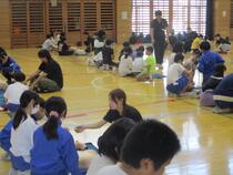 5年生は福祉に関する学習の一環として、アイマスク体験を行いました。実際に目が不自由な方に来ていただき、どんなことに苦労しているのか、手助けするときにはどのようにすればいいのかなど、ざまざまなお話を伺うことができました。また、アイマスクを付けて折り紙を折ってみて、まっすぐに折ることの難しさを体験しました。子供たちはこの体験から、人に優しくすることへの意識を高めていました。
